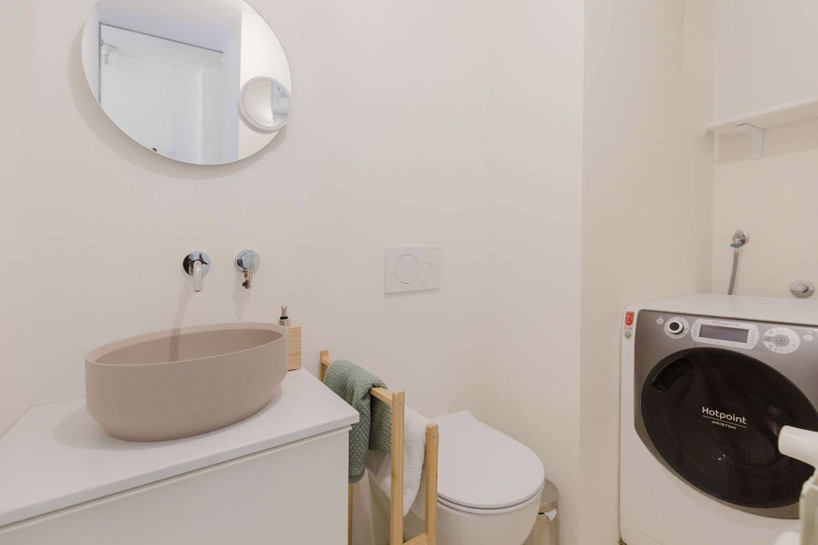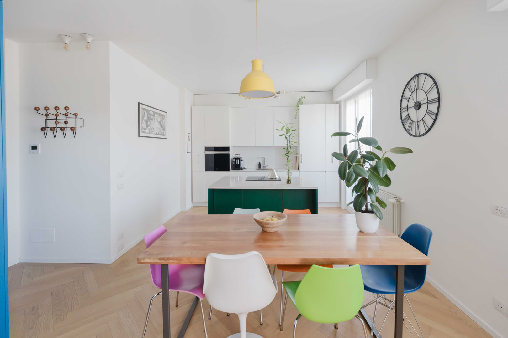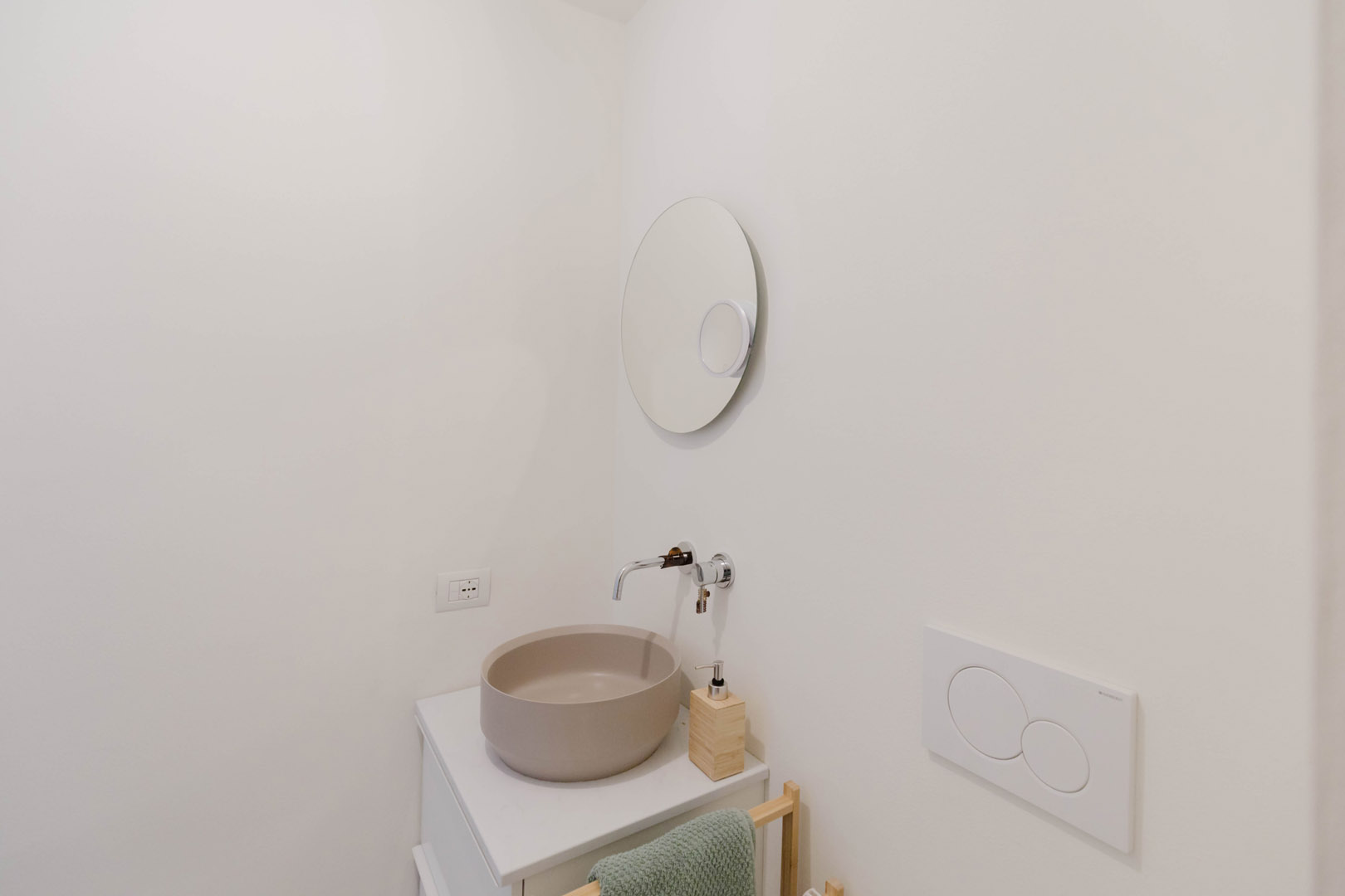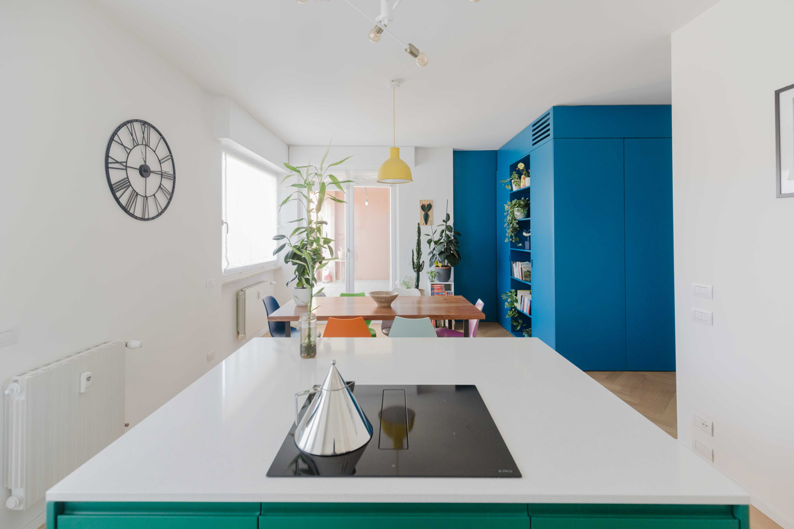 - Ingresso con un elegante armadio di colore blu, che nasconde l’accesso a un primo bagno/lavanderia e funge da porta-cappotti;