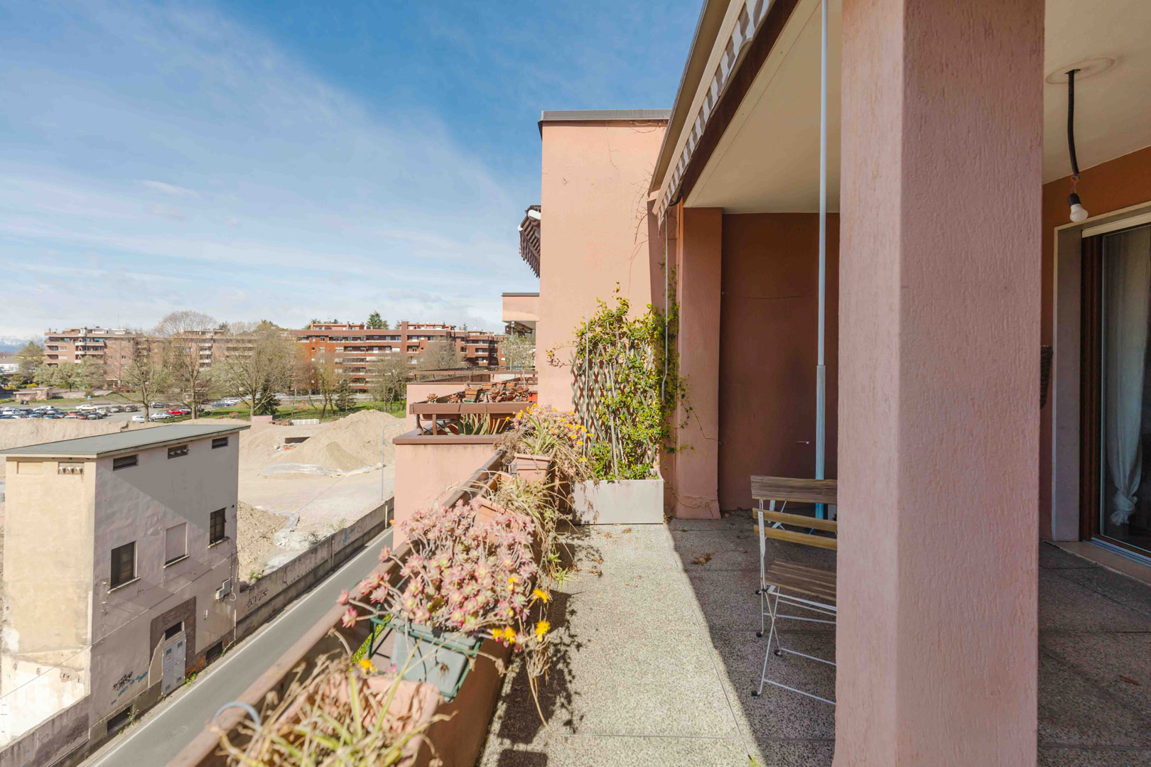 - seconda camera adibita a camera da letto principale con doppio affaccio sui terrazzi (secondo terrazzo coperto esposto sul lato nord), ampia armadiatura e bagno en suite.